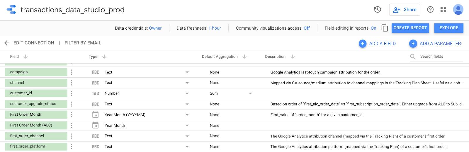 We need documentation where we consume data: in our case mostly in the BigQuery console, or Google Data Studio dashboards.